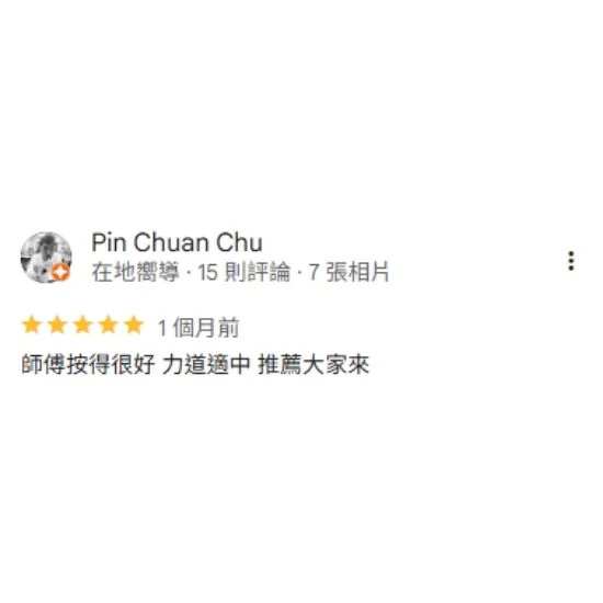 沐沐師傅技巧好,會針對不適的地方加強,按摩完很舒服,推推